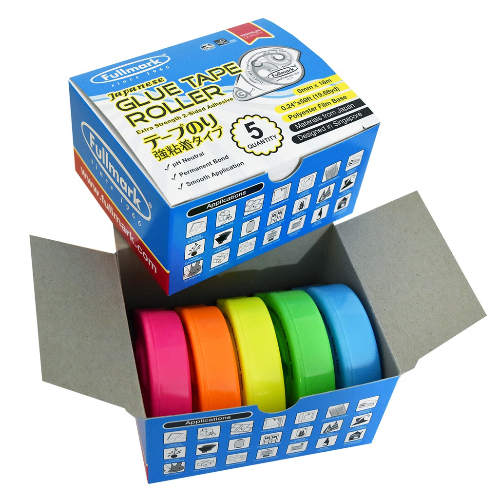 Fullmark Glue Tape / Glue Roller Assorted Colors [6mmx18m] , 5pack